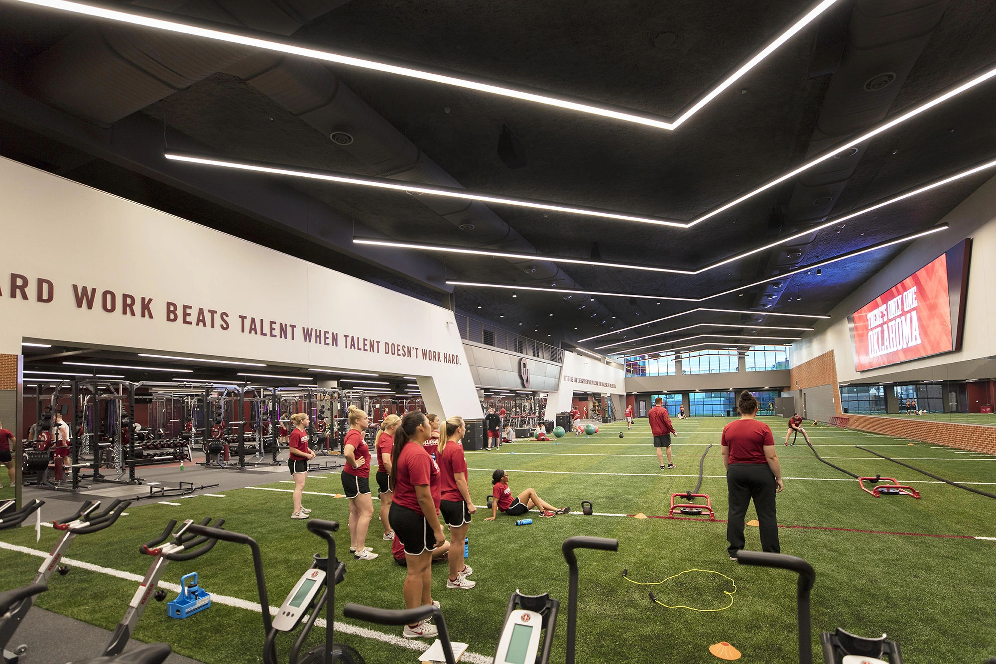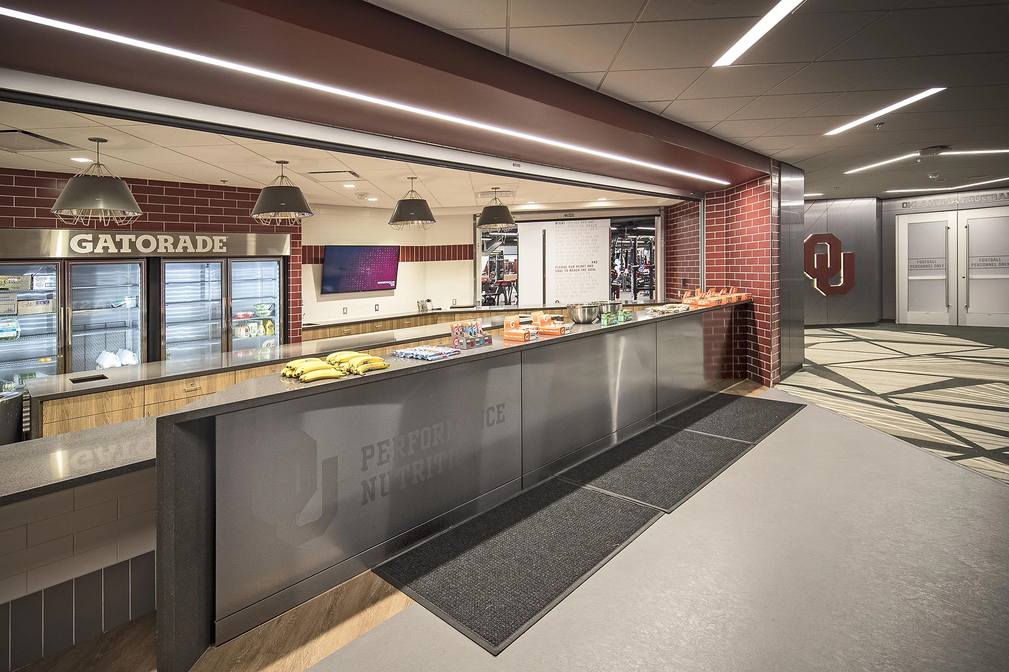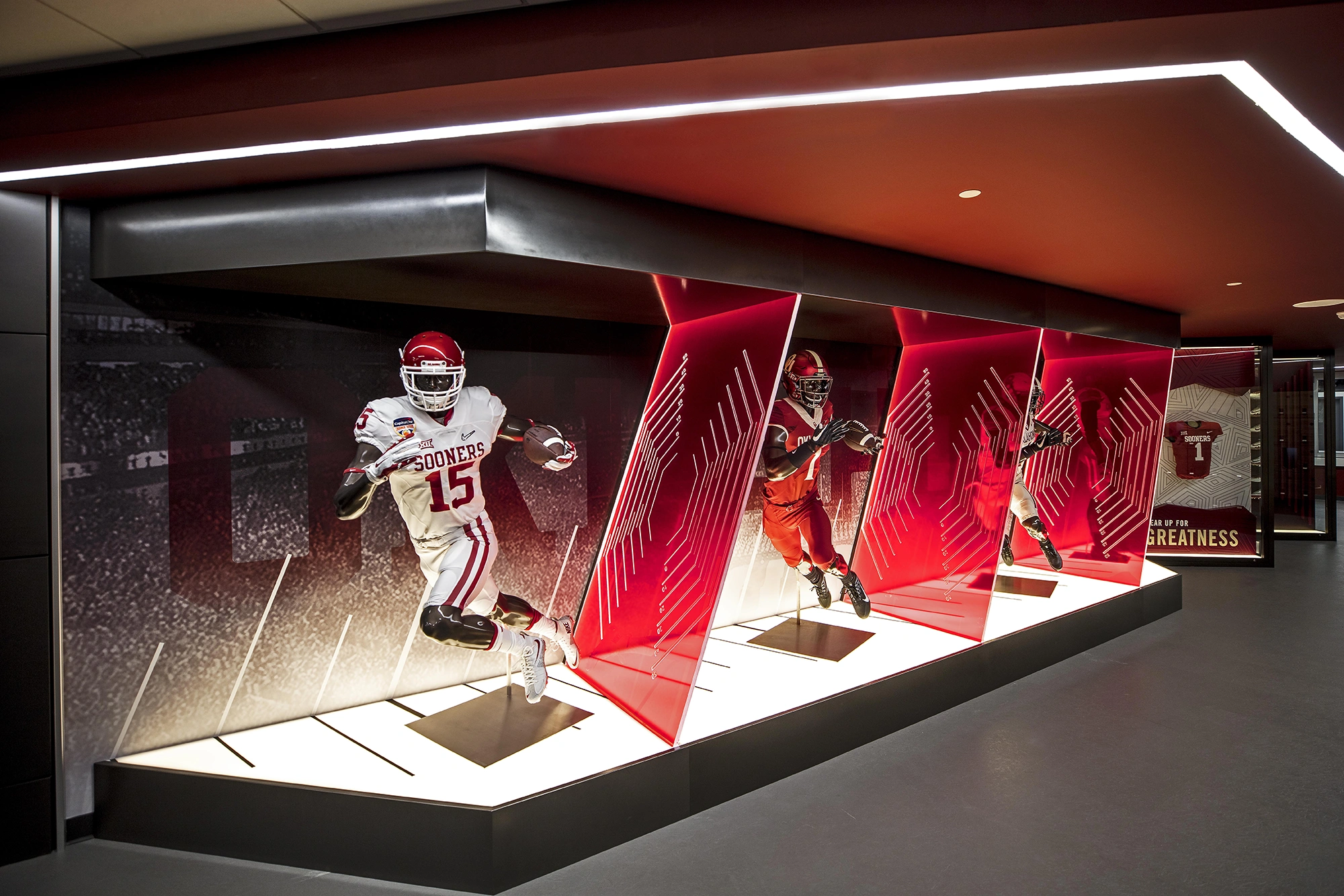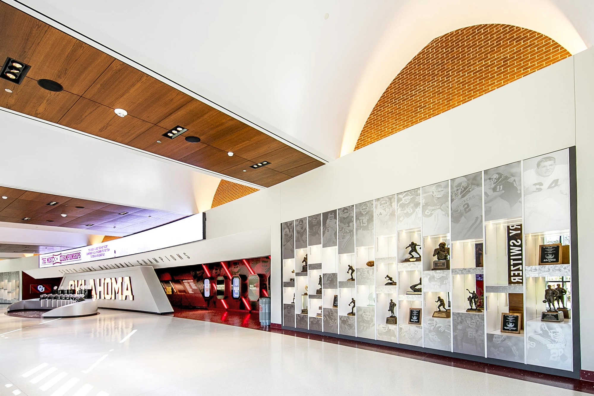 La renovación y ampliación del Owen Field mejora las instalaciones del equipo y los servicios para los aficionados, incluyendo nuevas gradas en la zona sur, asientos premium, oficinas para los entrenadores, salones, vestuarios y una zona de medicina deportiva. Dos nuevas plazas para los aficionados y una pantalla gigante, la segunda más grande del deporte universitario, mejoran la experiencia en el estadio. Realizada en colaboración con Austin Commercial, esta fase continúa la larga colaboración de Flintco con el Gaylord Family Memorial Stadium, basándose en las ocho fases anteriores y en las amplias mejoras realizadas en las instalaciones deportivas, las oficinas y los centros de entrenamiento.