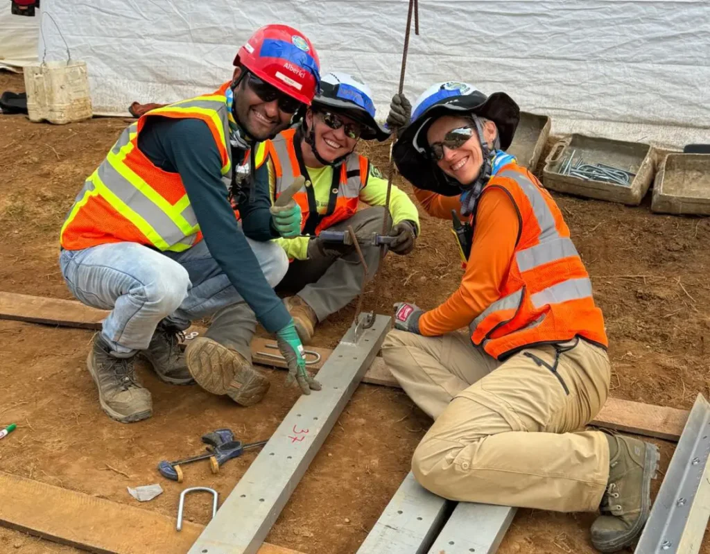 The local team had already set up scaffolding and painted the tower—an impressive and efficient start. From stretching and dancing alongside our Rwandan teammates to cutting and bending rebar by hand, the day was full of energy and teamwork. By day’s end, the bridge tower was raised, and the team celebrated a strong, united start.