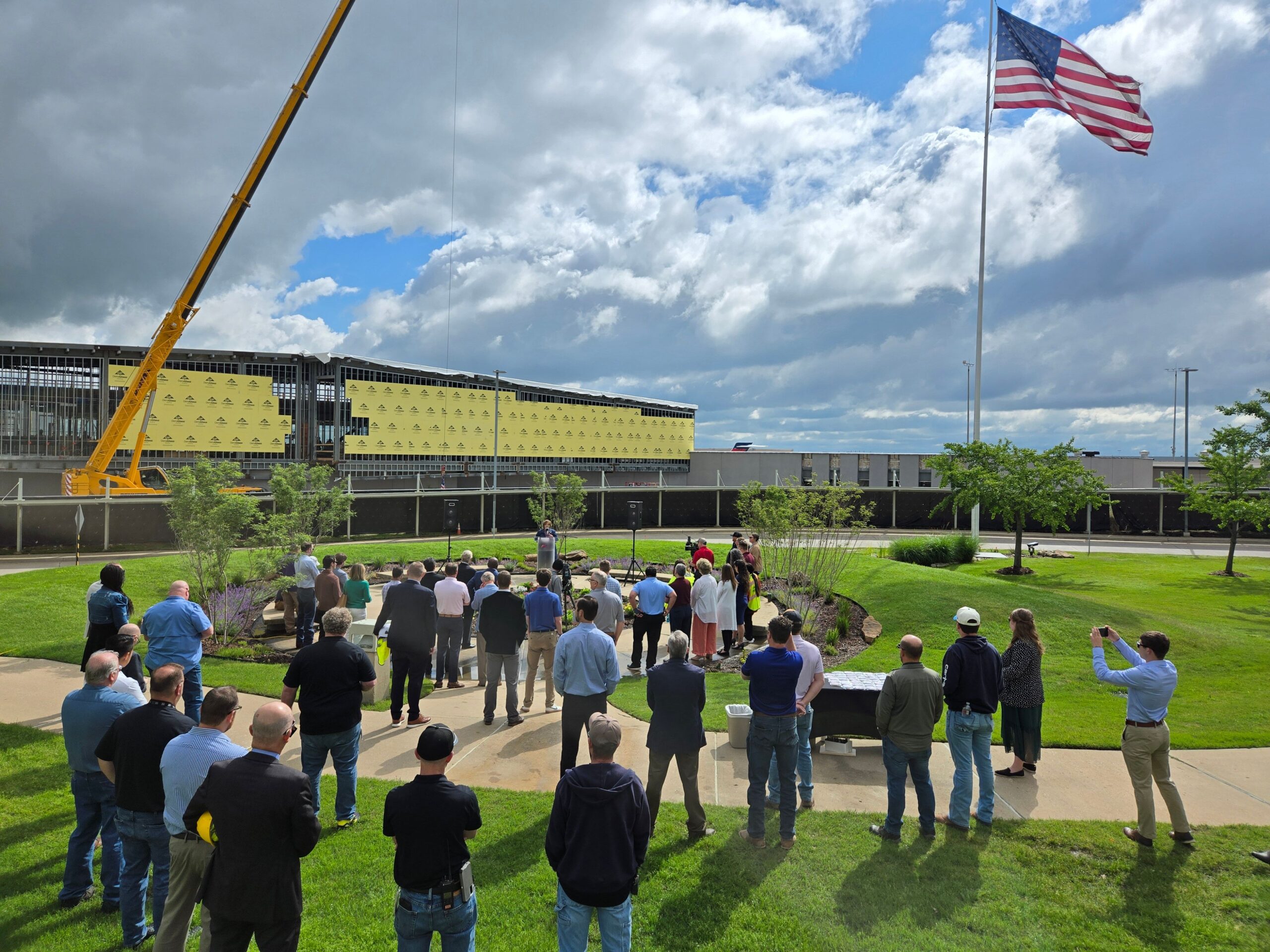 TULSA, OK – May 8, 2025 – The final steel beam was raised today on Tulsa International Airport’s new International Customs Facility, marking a major milestone in the project that will allow commercial air carriers to offer nonstop international flights out of TUL for the first time. To commemorate the occasion, the airport hosted a traditional “Topping Out” ceremony.