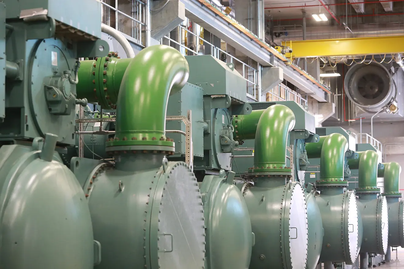 This design-build project delivers a 48,000 SF, 15,000-ton central chilling station, a 36,000-ton/hour thermal energy storage system with a 5.5-million-gallon tank, and a 13,000 SF cooling tower to serve the new Medical School District in downtown Austin. The team installs underground chilled water lines beneath an existing parking garage, excavates and constructs a vault room, and delivers chilled water to the campus ahead of schedule.